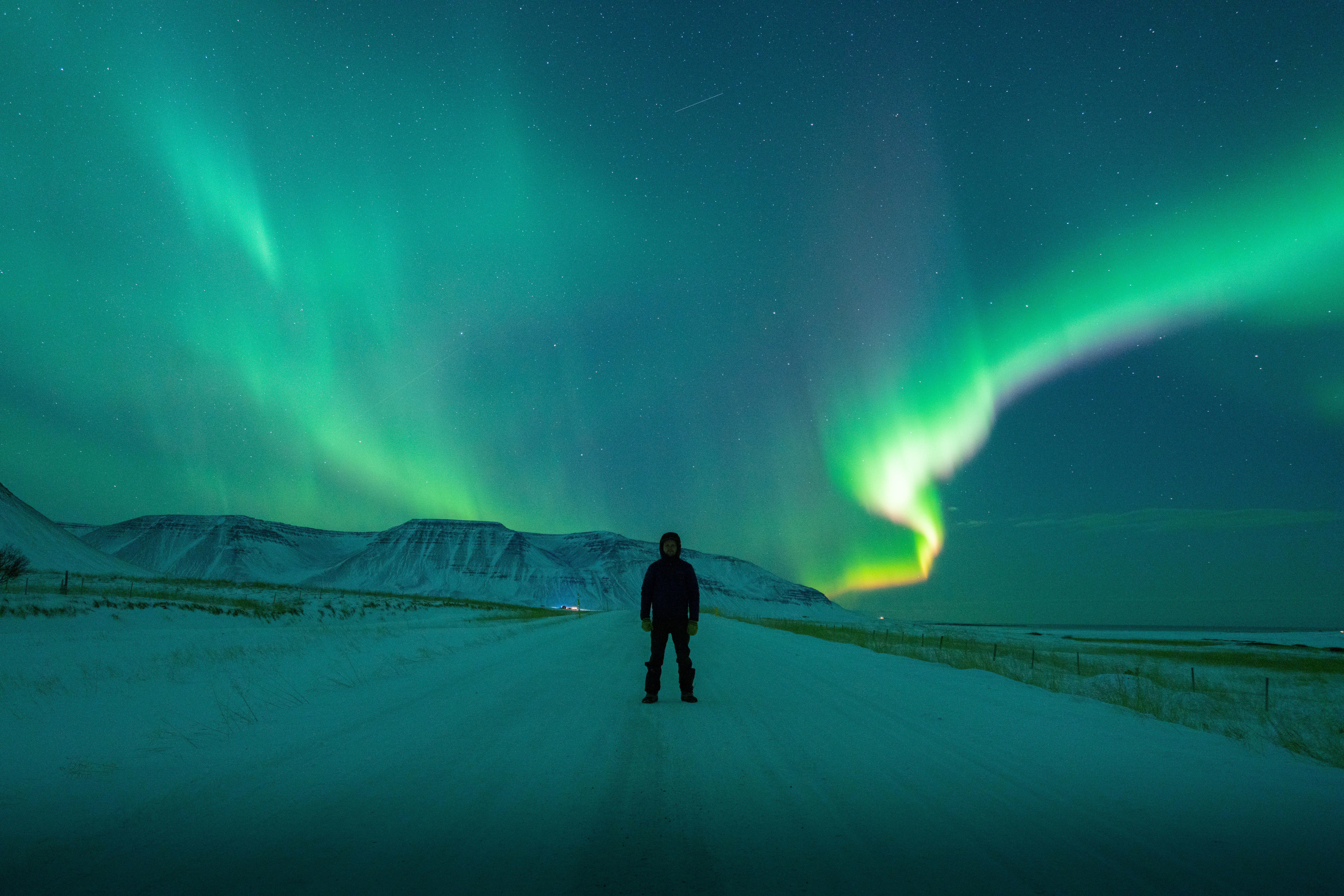 In Iceland, late spring and summer nights are full of light, and night walks (as defined by the clock) are a twilight hike at the most. If you are walking along the North Atlantic coastline, you will have a chance to see the sun dip its toes into the Arctic Ocean and shudder a bit, before rising into the sky again.